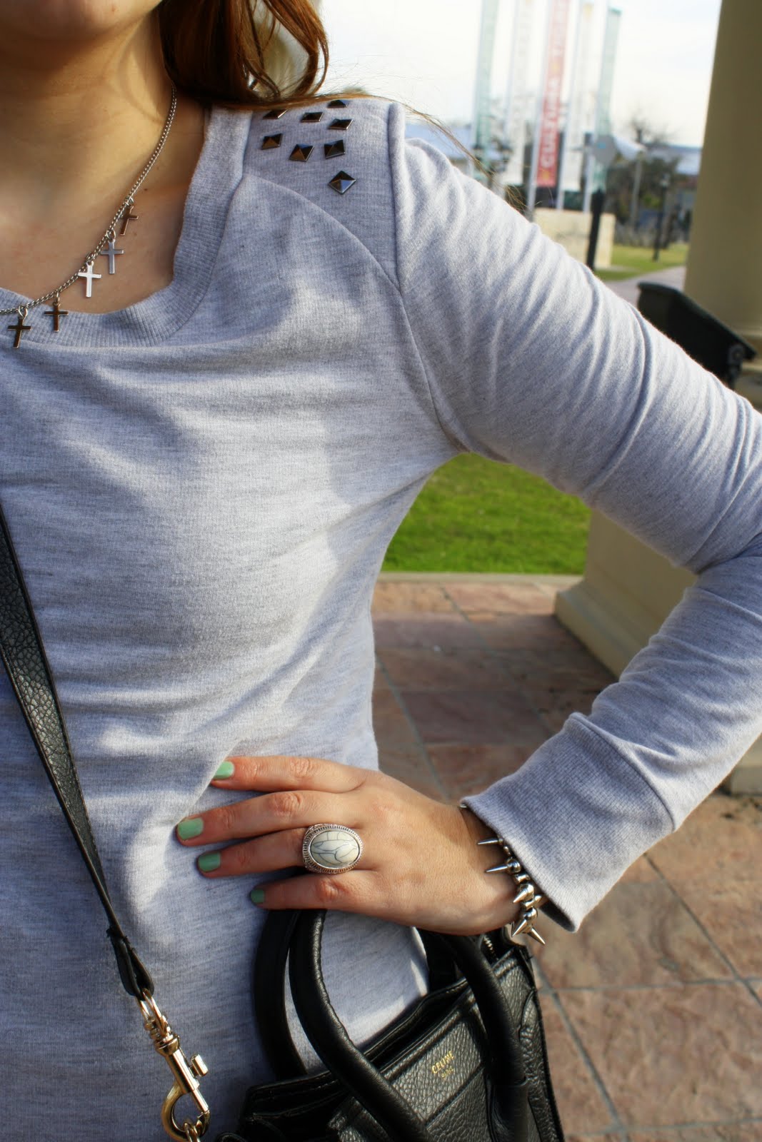 Los acompañe con un buzito con detalles en tachas ( ya pasaron a hacer un clásico!) y la celine bag (fake). Mido 1,75m por lo que me cuesta horrores andar con tacos y más si quiero estar cómoda como para patear por Tigre. ja!