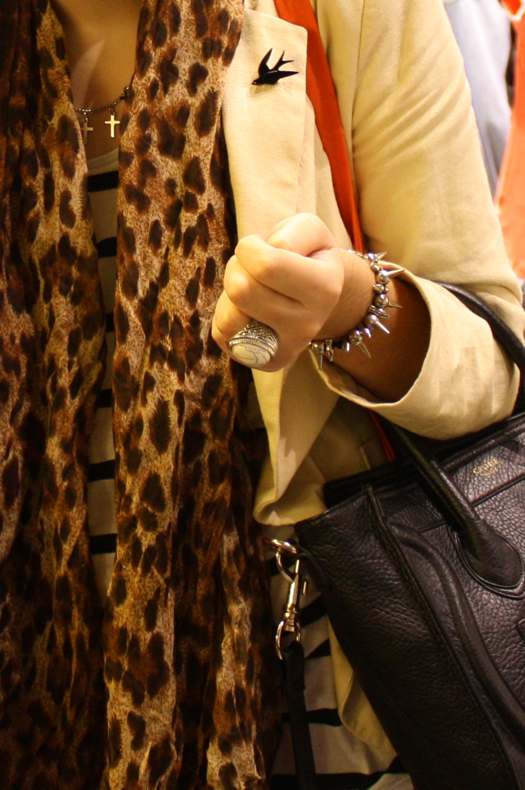Detalles de mi outfit! Saco (old), Portsaid. Remera a rayas(temporada anterior) y pañuelo AP, Complot. Collar y pulsera, Lithium. Prendedor y anillo, TM.