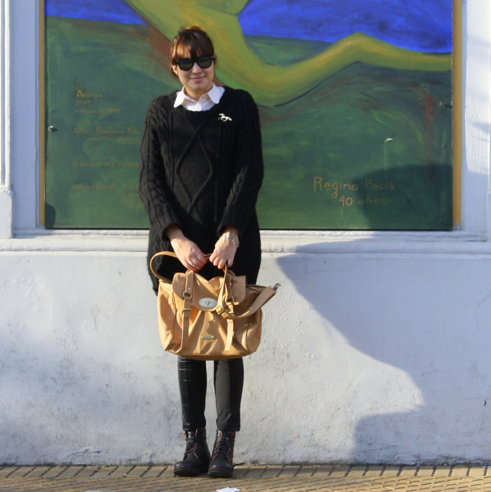 Maxi Sweater, María Cher. Camisa (old), PCDA. Calza, Complot by Calu. Borcegos (old), Rauch.