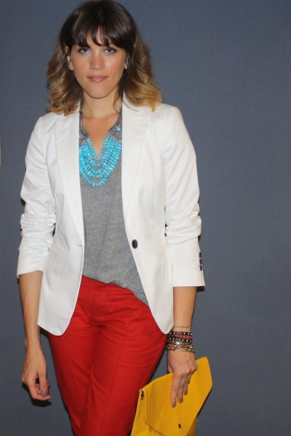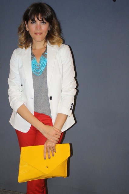 Pantalón rojo, Blazer Blanco y sobre amarillo!!! ❤