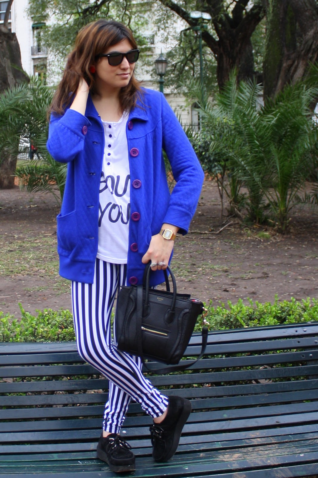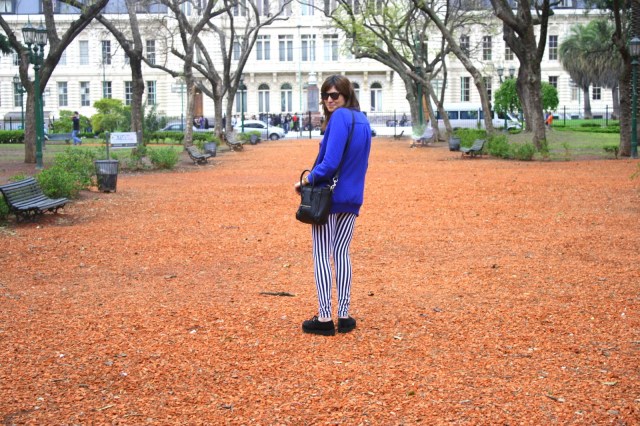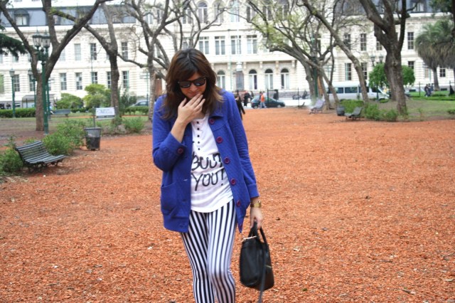 Buen miércoles!! Cómo están bonit@s!!! Hoy es un día particular, ya que se cumplen 4 meses desde que nació este espacio. Sí bien no es mucho tiempo, la sensación es al reves. Siento que hace bastante que esta este espacio porque el feedback que se ha generado ha superado mis expectativas!! Son maravillosos y quiero agradecerles por la buena vibra y lo que día a día aportan a este blog. Este espacio es y será gracias a ustedes! Crece por ustedes y se enriquece por ustedes!! Así que como muchas veces les he dicho el gracias me queda pequeño. Haciendo un mini balance, el otro día, charlaba con mi hermana sobre que es lo que me encantaba y que es lo que no me gustaba tanto. Me di cuenta que este espacio en verdad supero mis expectativas!! Que cuando tuve el primer comentario, me sentí dichosa!! jaja Sí, para mi era lo más que alguien me haya leído!! Así que día a día la alegría fue total!! Bueno y lo malo…. mmm en verdad no es fácil tener un espacio el cual se nutre principalmente de un outfit diario. Debo admitir que me he acostado a las 3 de la mañana por editar un post muchas veces, pero no puedo quejarme porque es algo que me gusta! Pero me he dado cuenta que si hay algo que no me gusta desde que tengo el blog, es que soy de enamorarme de las prendas y usarlas mil veces!! jajaj Bueno, suceso que he cambiado porque los aburriría!! jajaj Reflexionando con mi hermana llegue a la conclusión que a veces esta bueno repetir prendas para ver otras formas de combinarlas. ( Aclaración: cuando me refiero a enamorarme de las prendas es a enamorarme de los conjuntos!! Me los pondría de nuevo una y mil veces de esa misma forma!! jajaja ) Así que por eso hoy vuelven las calzas beetlejuinianas jaja de nuevo!! Pero en otro conjunto centrado en el : AZUL KLEIN