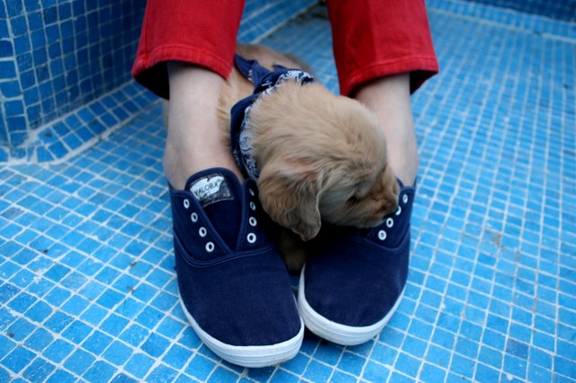4. jajaj mi vidaaaaaa me dan ganas de llorar (si, los perritos asi me emocionan lo juro una boluda ajaj) es muy tiernitooooo!!! La foto en la que esta el solo es muy muyyyy linda. Un osito ♥ Me gusto lo que te pusiste!!! Saludos 😉