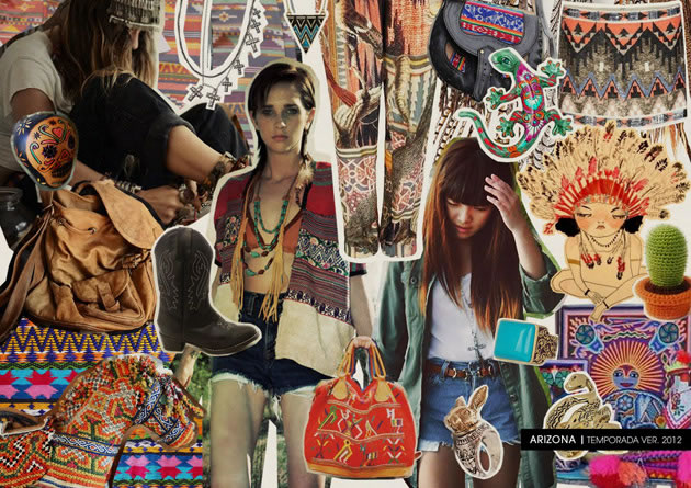 «ESTA TENDENCIA TIENE SU MUSA INSPIRADORA EN UNA EXPEDICIÓN AL DESIERTO Y SE EXPRESA A TRAVÉS DE SU PALETA EN COLORES TERROSOS. ESTAMPADOS ÉTNICOS Y ACCESORIOS CON PIEDRAS Y FLECOS SE COMBINAN CON JEANS Y CUERO, A LA VEZ QUE TOMAN VIDA SOBRE LAS PRENDAS LAS SERPIENTES, LEOPARDOS, PLUMAS Y REPTILES»