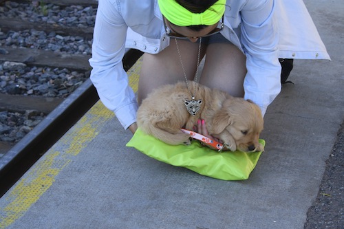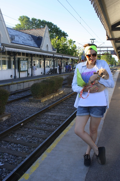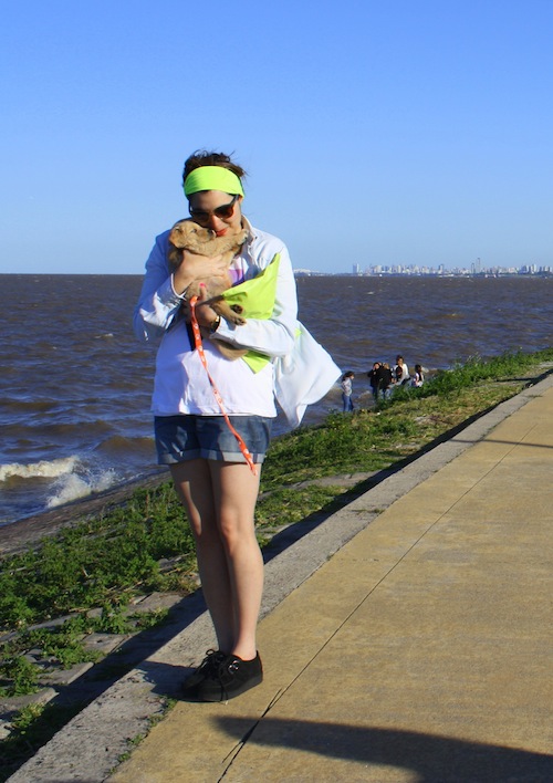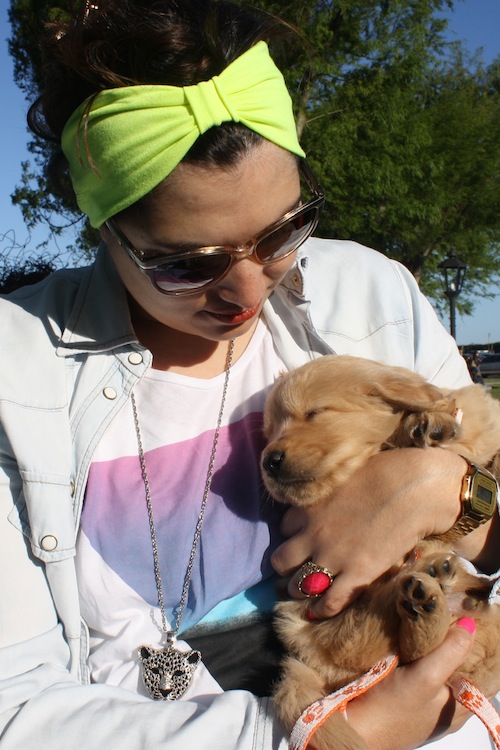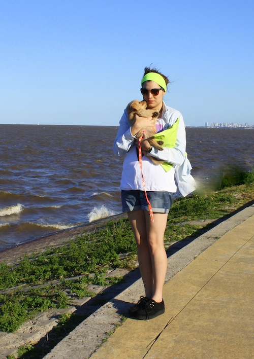 Que precioso ese cachorro!!! Y Excelente look, cotidiano pero con ese toque Neón genial! Besos!!!