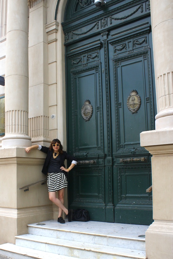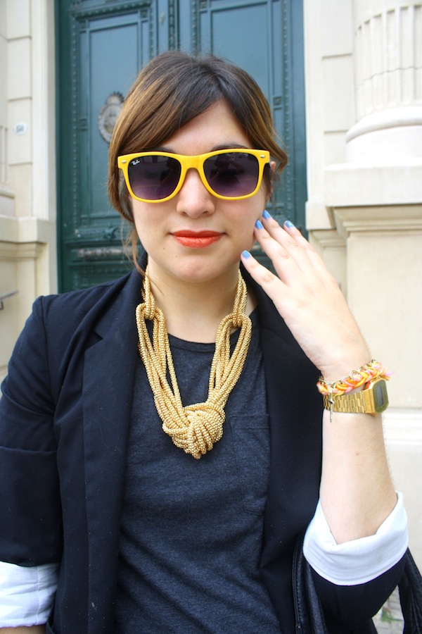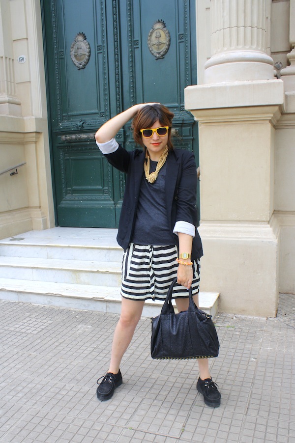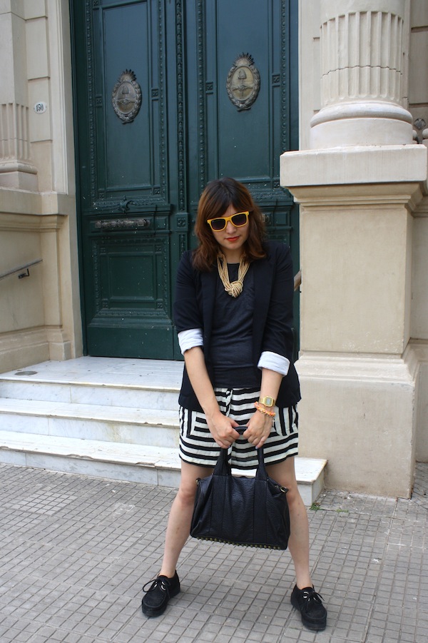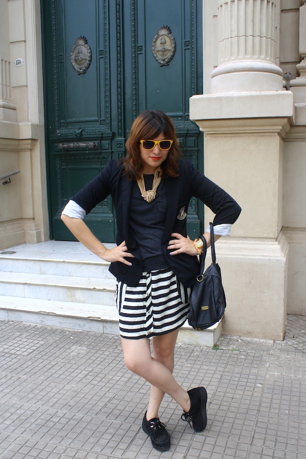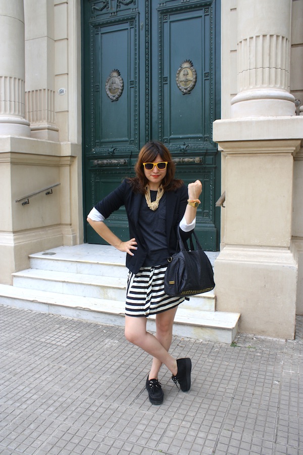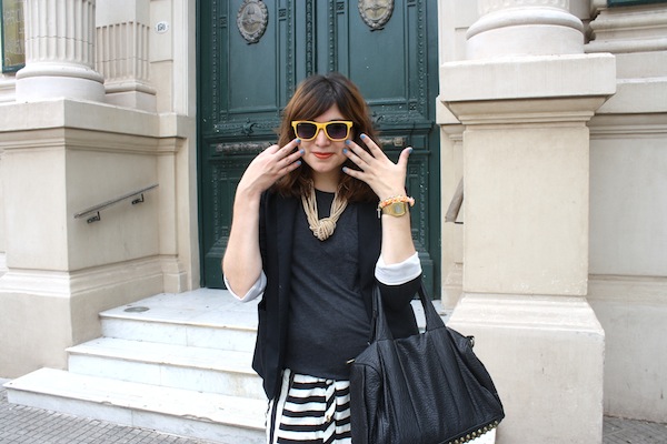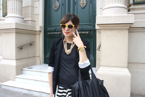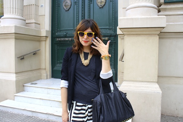 2. Adoré los fake Ray Ban en amarillo! Y la pollera, divina, tiene el grosor de raya justo, es dificil conseguir ese estampado. El collar de Nina Piu se lo ví tb a Aninka y me encantó, ustedes tienen gustos similares 😉 Impecable el outfit de hoy, Pri, y bien por los amigos que se copan a sacar fotos. Cómo extraño mi cámara! Jaja, re flogger.