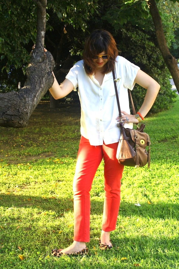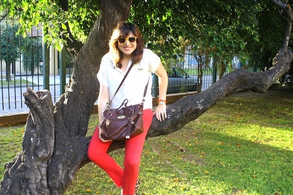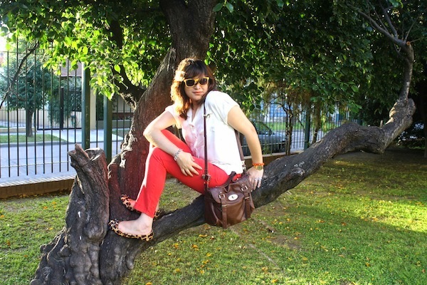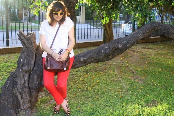 Qué les parece el pantalón rojo + AP + la seda? A mí me encantó! Sobre todo me gusto mucho el contraste del rojo con el marrón! jajaja ^^