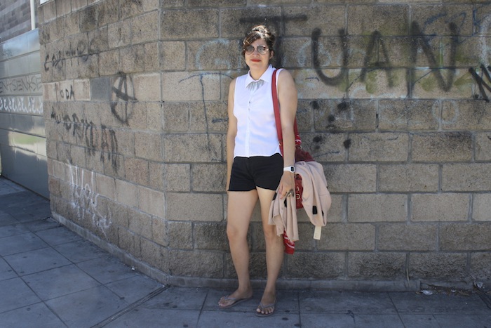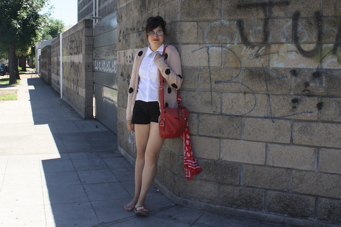 Todas las tendencias en ese look, Pri. Los polka dots bien grandes, el mix beiga+negro, la camisa cerrada, el collar alrededor del cuello… sos la trendy girl a full! Eso sí, los shorts -tu marca registrada- están siempre presentes 😉