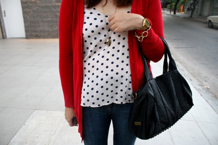 Hola me encanto el look, me encanto el conjunto de cardigan y la remera a lunares ♥.