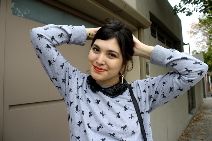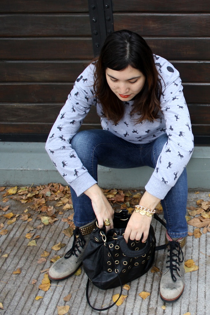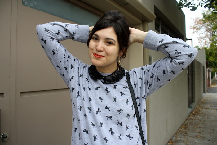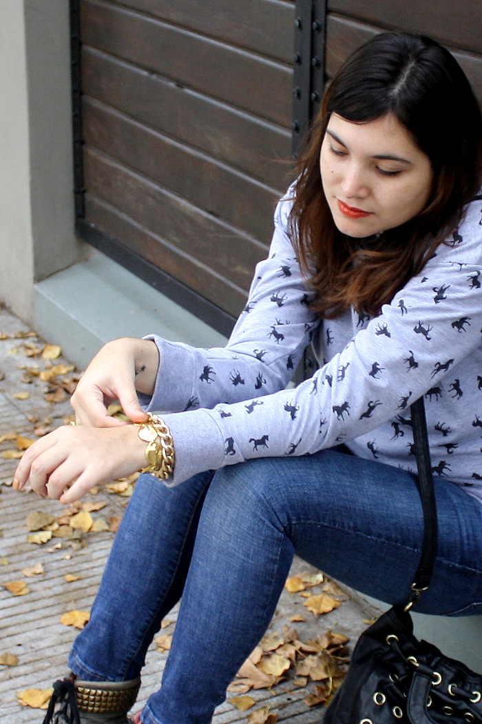 5. Muy lindo el look, ideal para estar trendy en el día a día. El cuellito es muy «blogger style», sobre todo el que vos usás en este post, tipo «baby». Las estampas de caballos me gustan mucho desde hace mil, desde la primera colección de Stella McCartney para Chloé, ella ahí usó mucho «caballito» en vestidos y pantalones, desde ahí que tengo fijación por esta estampa.