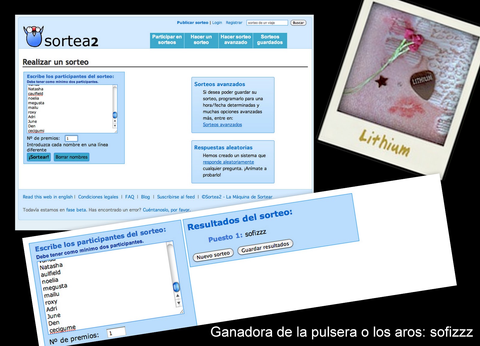 Primero primero: FELICITACIONES A LA GANADORA!, A DISFRUTAR MUCHO TUS LITHIUM 🙂