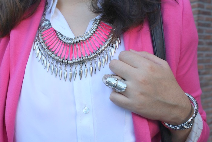 Los collares XL hace un tiempo que son tendencia y el color neón quiere instalarse. ¿Qué mejor que aprovechar esta unión?