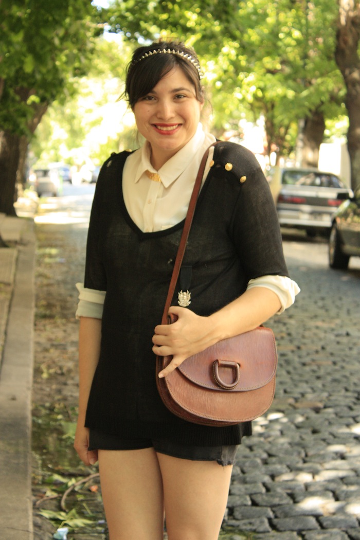 Hace ya unas semanas que me seduce el negro con el marrón y gracias al clima ventoso pude usar este sweater muy finito que en otoño/invierno me daba frío! Y aquí otra joyita vintage (era de mi mamá y debe tener más de 30 años ^^) la cartera, que hace bastante que no usaba.