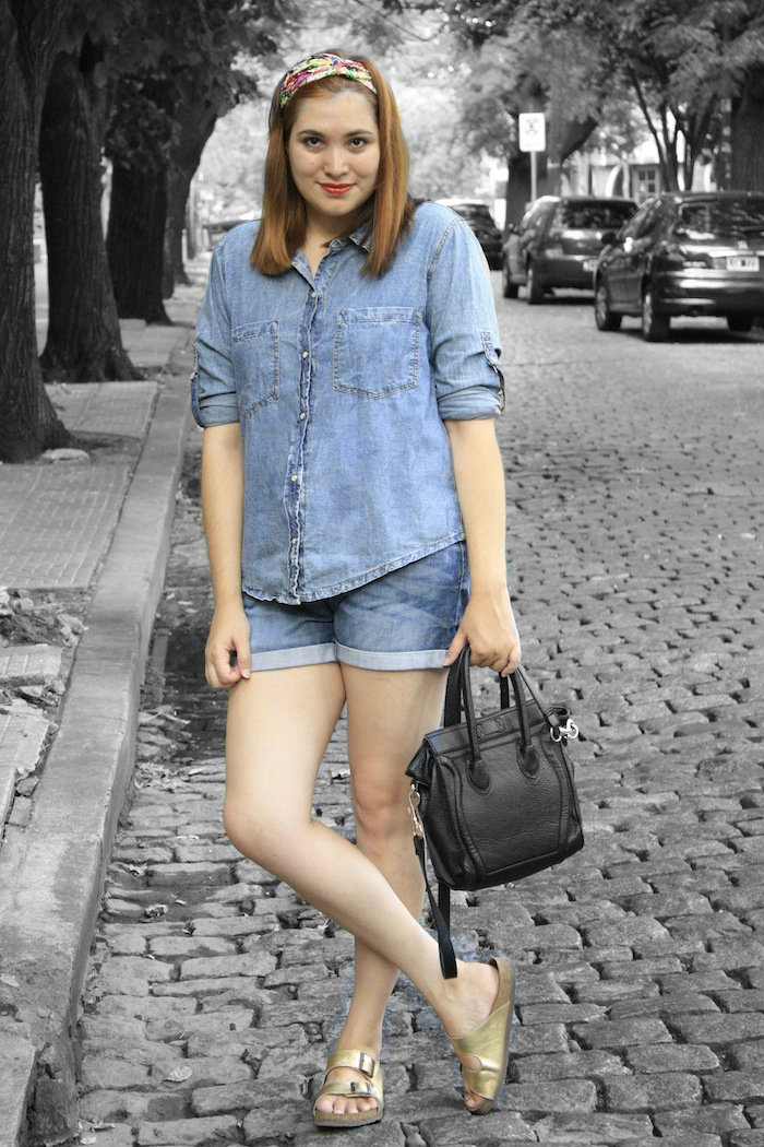 Hola Pri! Me encanta la combinación denim+denim, la uso siempre también. Lindo toque el de la vinchita y las sandalias doradas.