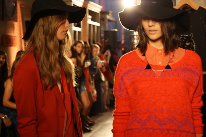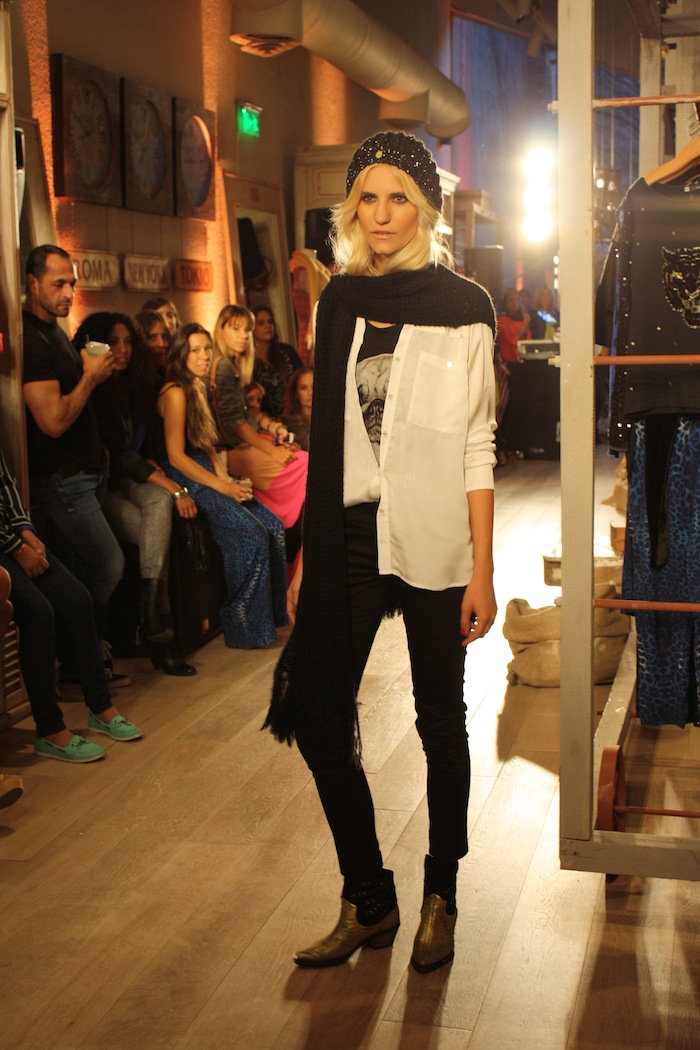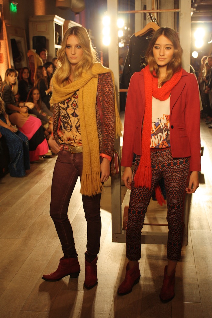 Buena colección, mas a lo seguro. Para destacar son las prendas/looks con texturas y estampas – hay un saco largo con el ruedo en negro combinado con short de jeans, por ejemplo – la paleta de colores es la continuidad del año pasado lo mismo que el toque de la capelina. Recordemos que Koxis y Rie, por ejemplo, la ponian en sus graficas el otro invierno.