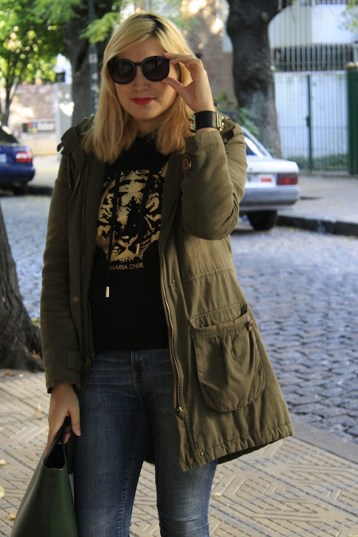 (Outfit: Parka (old), Complot. Jean, buzo y borcegos, María Cher. Cartera, Zara. Brazalete, Lithium)