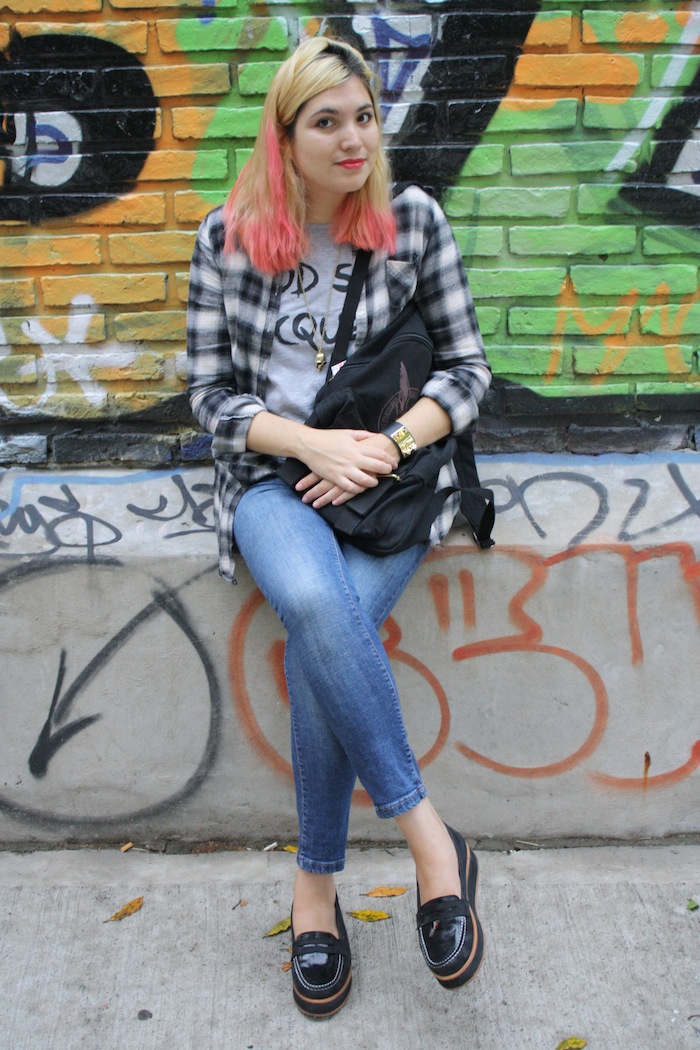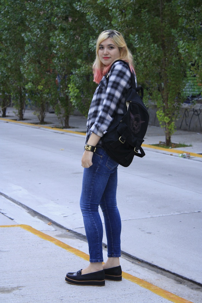 Outfit: Jean, María Cher. Remera, Hey McFly. Zapatos, Clona. Camisa (old), Numa. Brazalete, Lithium.