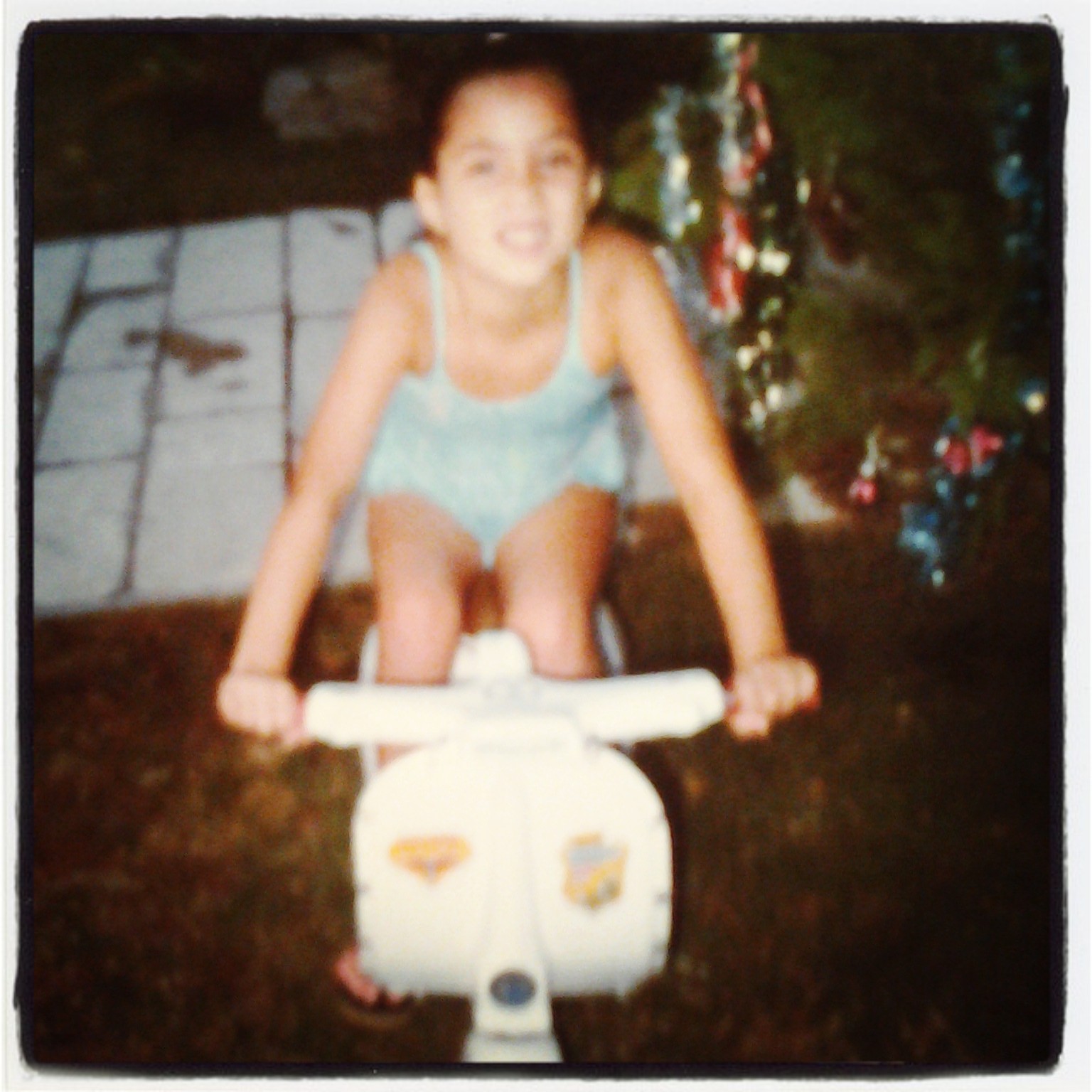 …lloro una vez al mes, sobre todo cuando hay frío. Eso diría Shakira, cuándo sus letras inspiraban. Hoy les digo yo, que si es cuestión de confesar siento cierto nostalgia por recuerdos o situaciones vividas. Fue así que cuando vi esta moto no dude a pesar de que la luz no era buena (disculpen la calidad de las imágenes) en fotografiarme junto a ella. De chica tenía una moto así, con la pequeña diferencia que era a pedal jajajaja, en blanco que amaba! Me montaba con una botas texanas en blanco, digamos que era un personaje.