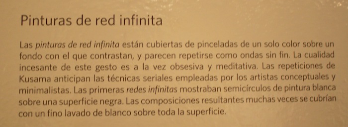 «Los puntos son sólidos e infinitos. Son una forma de vida. Sol, luna, estrellas son cientos de millones de puntos. Cada ser humano es también un punto. Los puntos no pueden existir por sí mismos, solo pueden existir cuando se reúnen unos con otros. Admiro completamente su «infinitud» y estoy profundamente conmovida por la grandiosa presencia del universo, que está lleno de un poder misterioso»