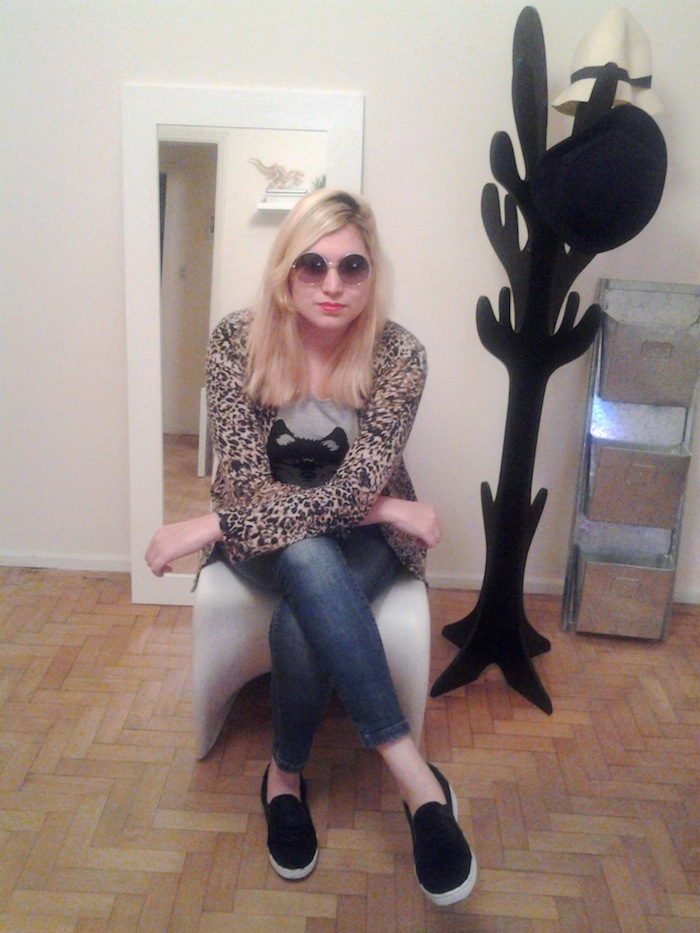 Hoy se destaca mi cardigan de Mercado Bs As, que me gusta en especial porque mezcla  animal print con el estampado camuflado; lo que hace que sea único. Lo acompaña una remera de nuestras amigas de la casa, las chicas de Justa Bs. As., que me ha encantado! Este outfit lo use estos días de pseudo primavera, hoy con este fresquete le agregaría un buen abrigo y cambiaría el calzado por unas uggs o unas buenas botas/borcegos!