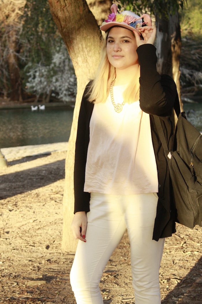 Que buen look! aunque si lo veo muy primaveral por el pantalón blanco. Las coronas de flores me gustan, aún cuando me CANSÉ de verlas en el BAF.