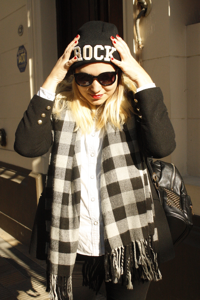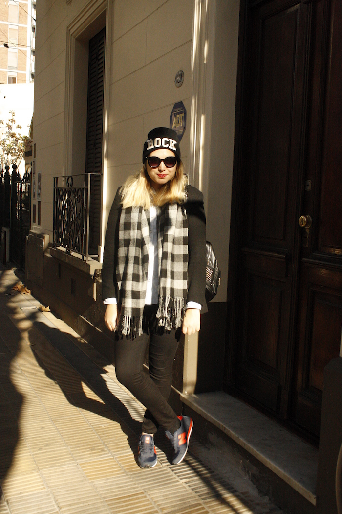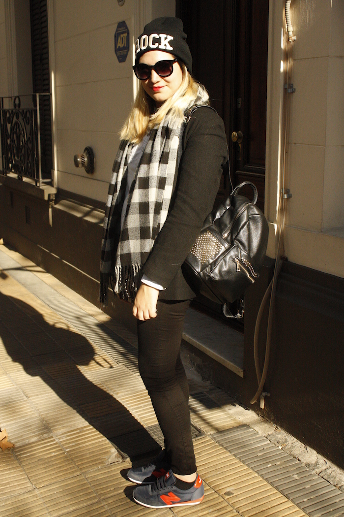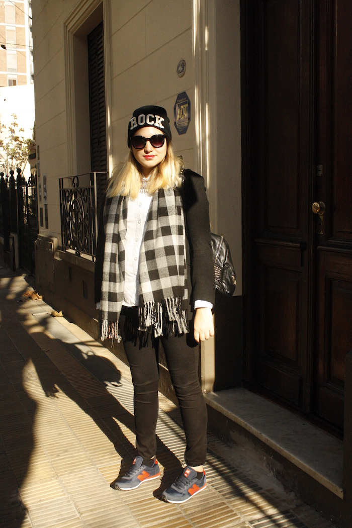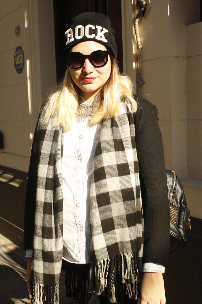 Así como mi madre solía decir que «cuando era chiquita ya era grande» para referirse a una persona que sin dudas se sacaba edad cuándo tenía más que ella, yo les digo: cuando era chiquita se llamaba escocés. Pues bien, esta temporada sin dudas el escocés- o tartán como lo llaman ahora-, ha vuelto pisando fuerte y lo estamos viendo hasta en la sopa. Pero más que volver, no nos engañemos, nunca se ha ido, estando siempre vigente. Esta estampa que ya  lucían los escoceses en el siglo XIII, sin dudas se ha vuelto atemporal y seguro algo con ella tienen en el guardarropa! Así que ahora aprovechando que es tendencia – tienen la excusa perfecta- a revolver el placard para  usarla! Fue así que me tente en usar esta bufanda – que data hace años- con un escocés no tan tradicional, que combina el celeste y el negro de un modo perfecto. ¿Qué les parece?