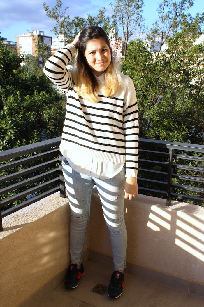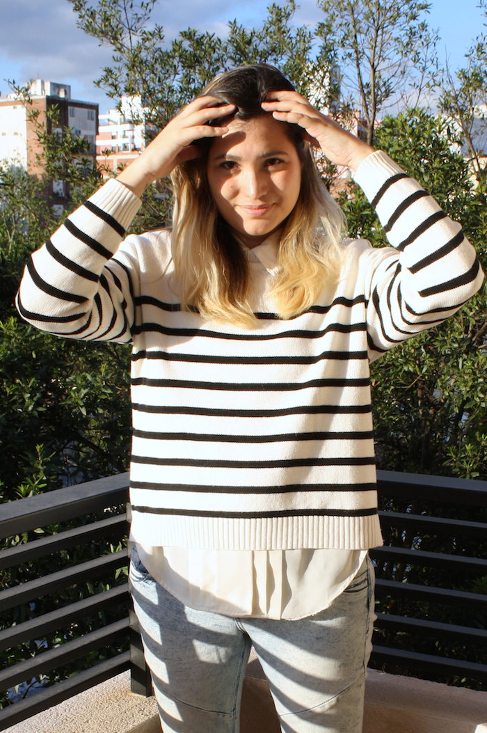 Asì que aquí, hacemos la presentación formal. Y les muestro la propuesta del día, donde pueden ver que ando fanatizada por las rayas, y es una excelente opción para este clima primaveral.