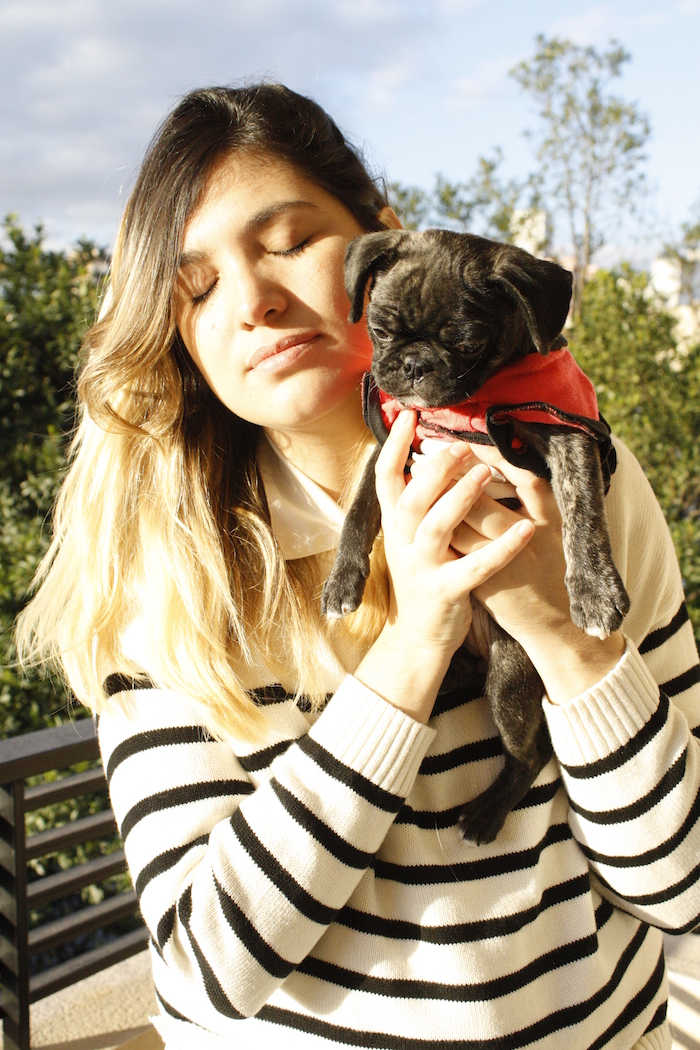 Hace tiempo que buscaba una compañerita para Sigmund, nuevamente tenia que ser pequeña porque vivo en dto. pero esta vez hembrita para en un futuro evitar roces por dominancia. Matilda, la frug, cruza de bulldog francès con pug llegò a casa hace unas semanas. Sin embargo, la esperaba desde el minuto cero. Cuando nos pusimos en contacto con la dueña de la mamà de Matilda ya que buscaba adoptantes, todos los días seguía vía internet cómo iba creciendo Mati. Si venìa por cesárea, si no. Fue asì que nació por parto natural, y a los 15 dìas viaje a La Plata a conocerla. Si bien no sabía cuál me asignarían, conocí a dos hembritas posibles. No hubo día que no nos mensajearamos todo el grupo de adoptantes, y veamos fotos. Desde el minuto cero, nos lleno de alegría.