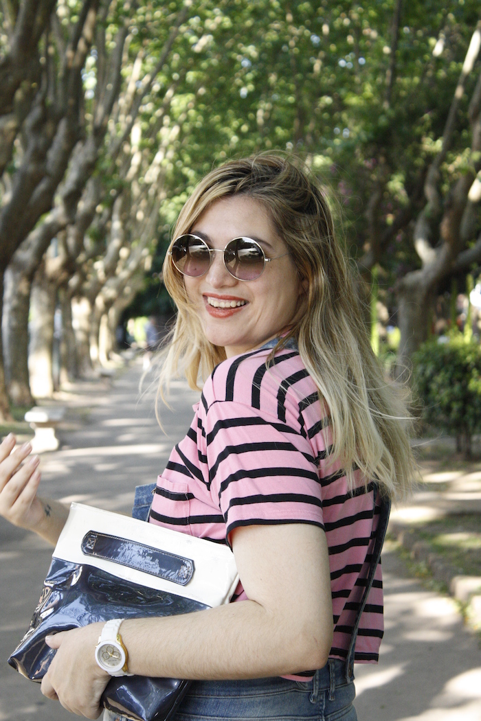 Me encantó el look, me resulta muy tierno y femenino, con los lentes y la cartera que lo «enserian» un poco, y le suman actitud. Lo único que no me gusta son las chancletas, que me recuerdan a las que usaban los varones en la colonia de verano jaja igual me encanta cuando un look tiene accesorios tan extraños para mi 🙂