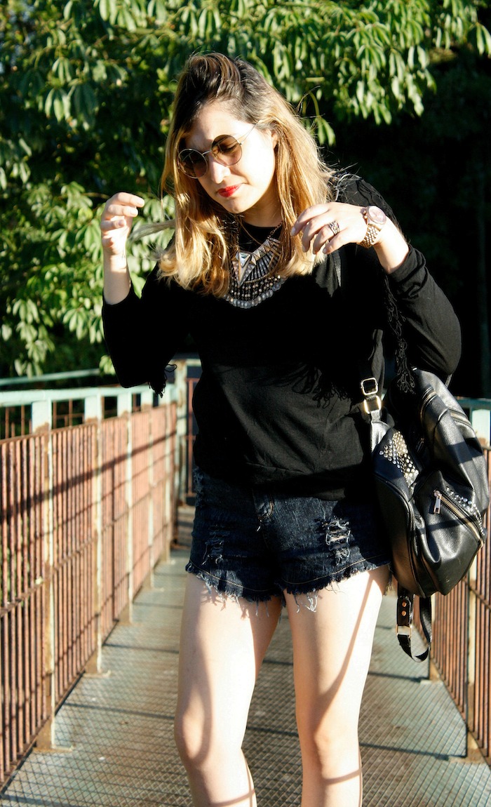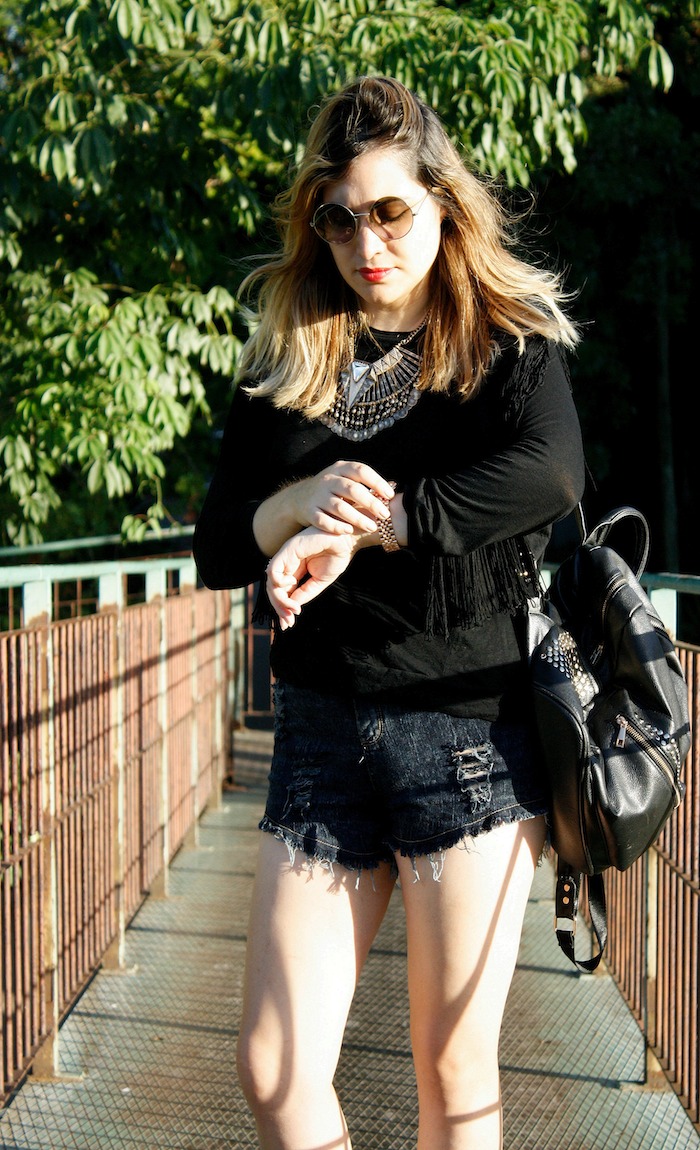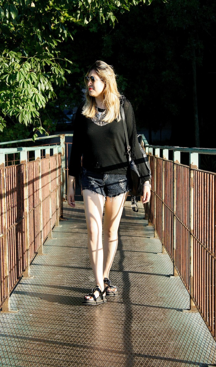 Hoy les muestro una de mis adquisiciones en época de liquidación, esta remera manga larga (70%OFF). Me gustó porque es media estación,  guiño para este tiempo más fresco, tiene flecos 😀 y a un muuuy buen precio. Acompañado de mi short preferido este último tiempo , que ya han visto acá. En mi recorrida, sí, estuve haciendo algunas compras aprovechando el plan de 12 cuotas sin interés promocionado por el gobierno, me tope entre otras cosas con una campera de cuero con flecos  a 12000p!!!!!😱😱😱  y me pregunto entonces, ¿qué esta pasando con los precios? ¿Qué esta pasando con las marcas? En dónde viven… porque para mí los precios de hoy en día están imposibles. Y confieso que me surge hasta cierta negación, es decir, no pagaría eso tampoco. Lo que más me llama la atención es que las prendas se agotan estando a esos precios altísimos. Sí, parece que la nueva estrategia es hacer menos prendas, y cobrarlas un precio alto. Crean exclusividad, siguen ganando porque hay gente que lo paga, y crean la ilusión de objetos de deseo como si se trataran de marcas de lujo cuando no lo son. Ni hablar que en muchos casos, encima, hablamos de copias.