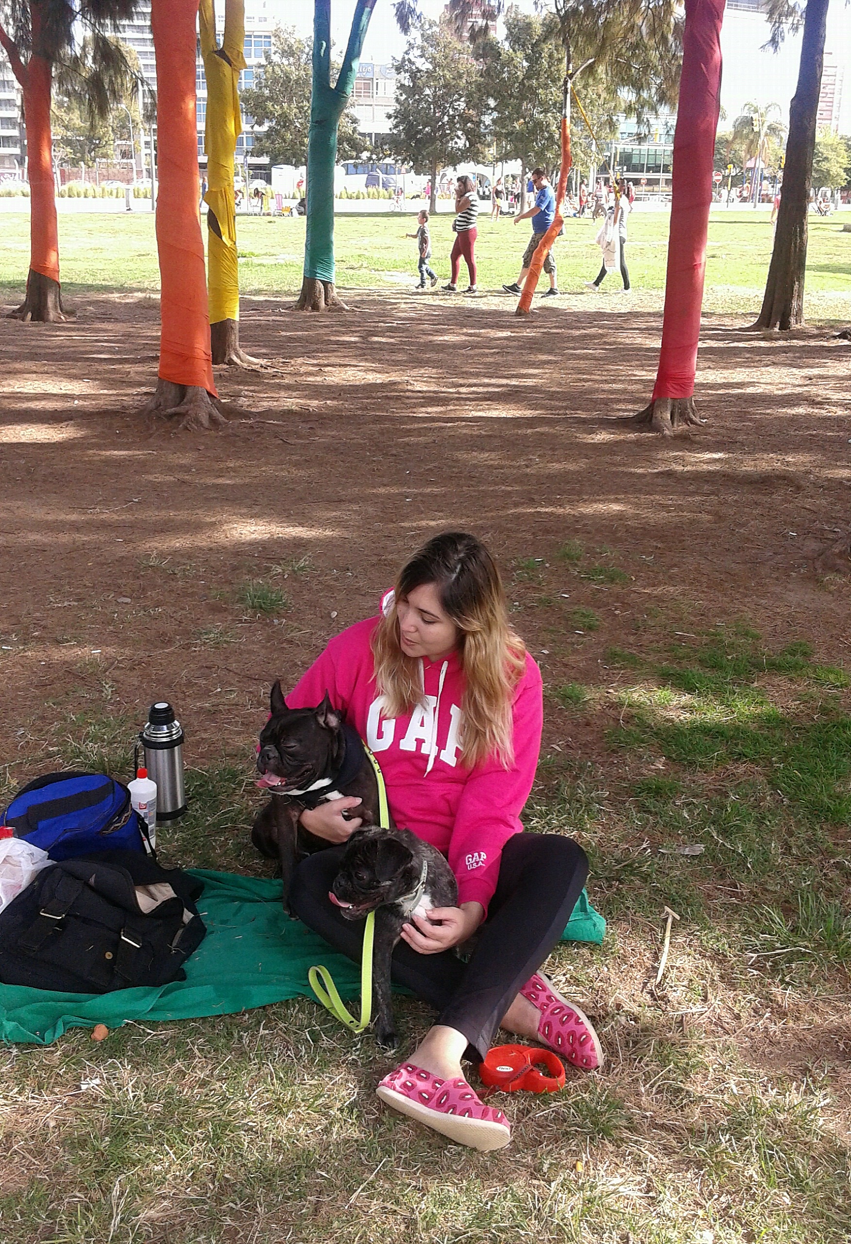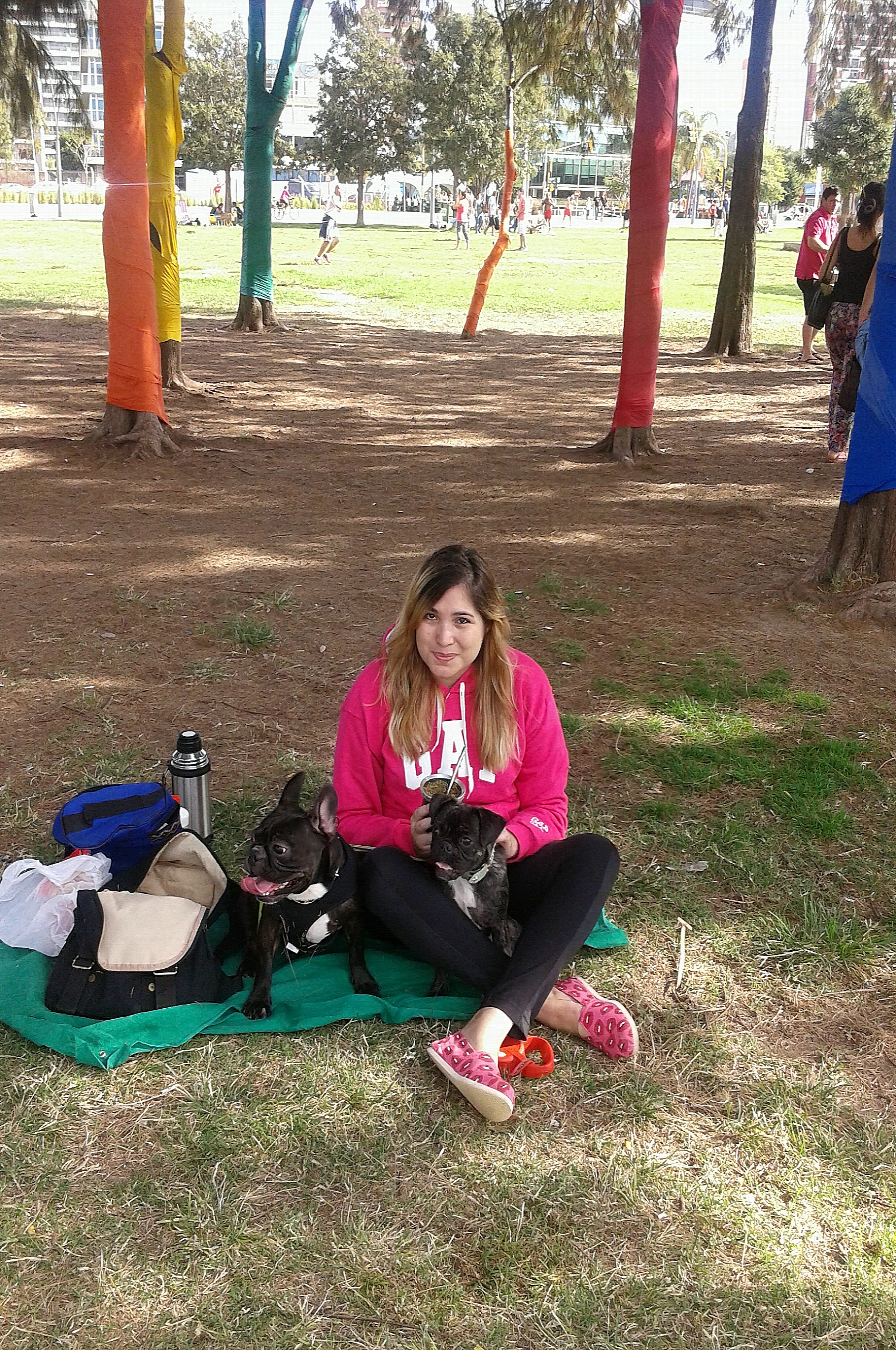 Una vez por mes, en el río, hay un encuentro de bulldog francés. Pertenezco al grupo desde que tengo a Sigmund y él, ama estos encuentros. Así que siempre que puedo lo llevo a que se encuentre con sus amiguitos. Y Matilda también lo ha comenzado a disfrutar. Esto implica terminar en el piso, ser saltada y mimada por miles de chanchos. Por eso opto por algo cómodo, como un buzo, calzas y alpargatas.