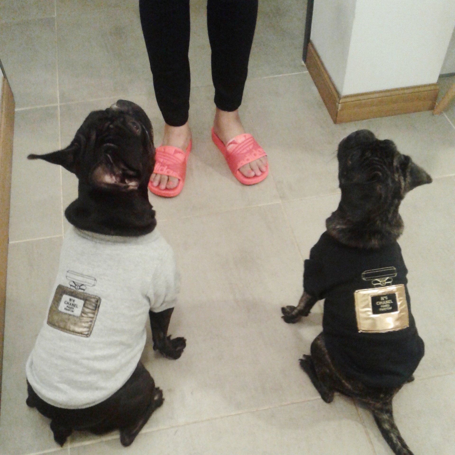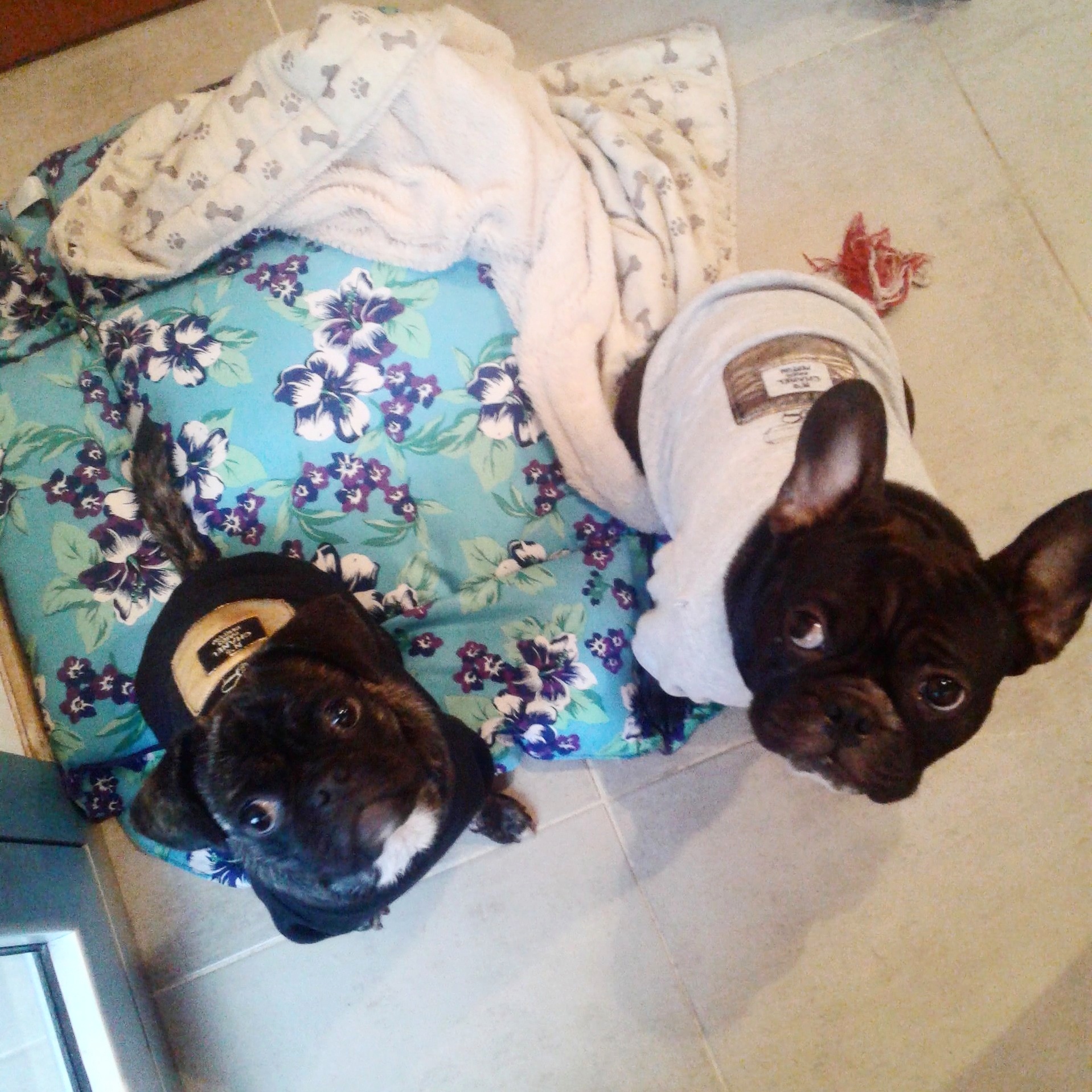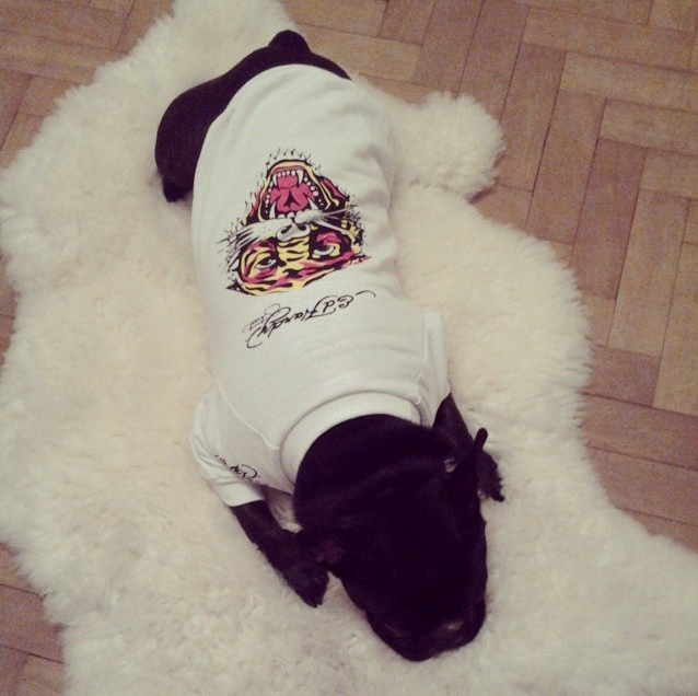 No estoy a favor del disfraz, sino que como mis perrihijos tiene pelo corto y son braquicefalios, sufren bastante el frío por lo que en ocasiones Sigmund tiembla. Matilda se la banca más, creo que es por la doble capa de pelo (una larga y otra corta) que la heredó del pug. Pero bueno digamos que ella heredó todo lo que le dejo su hermano mayor ( recuerden el artículo 😜)